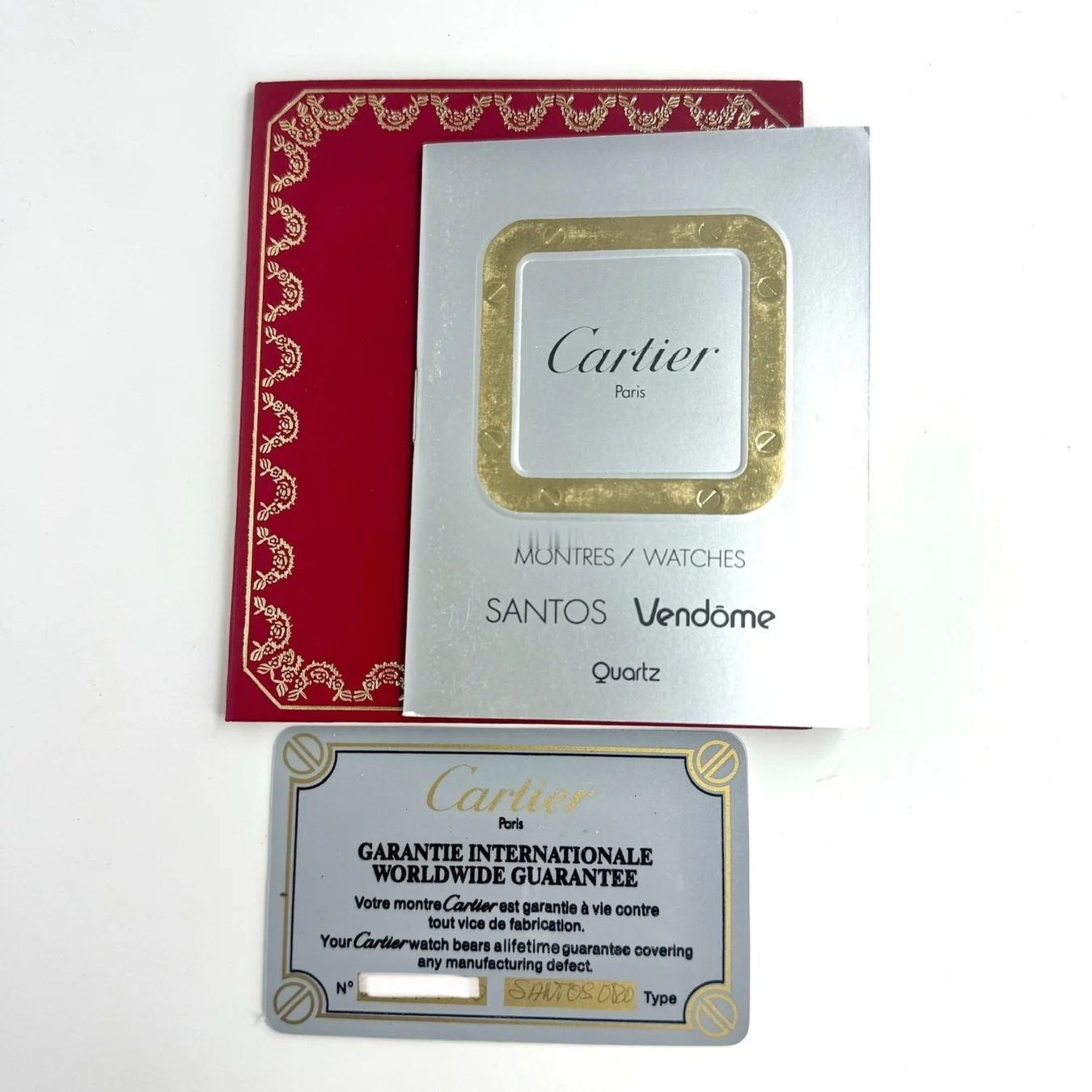 A refined and classic Cartier Santos Caree in solid 18K yellow gold, featuring a white Roman numeral dial and automatic movement with a 24mm case. Offered with its original Cartier box, outer case, warranty card, booklet, and booklet holder. This watch has reference number 0901 and was produced in the early 1984. This watch is all original.