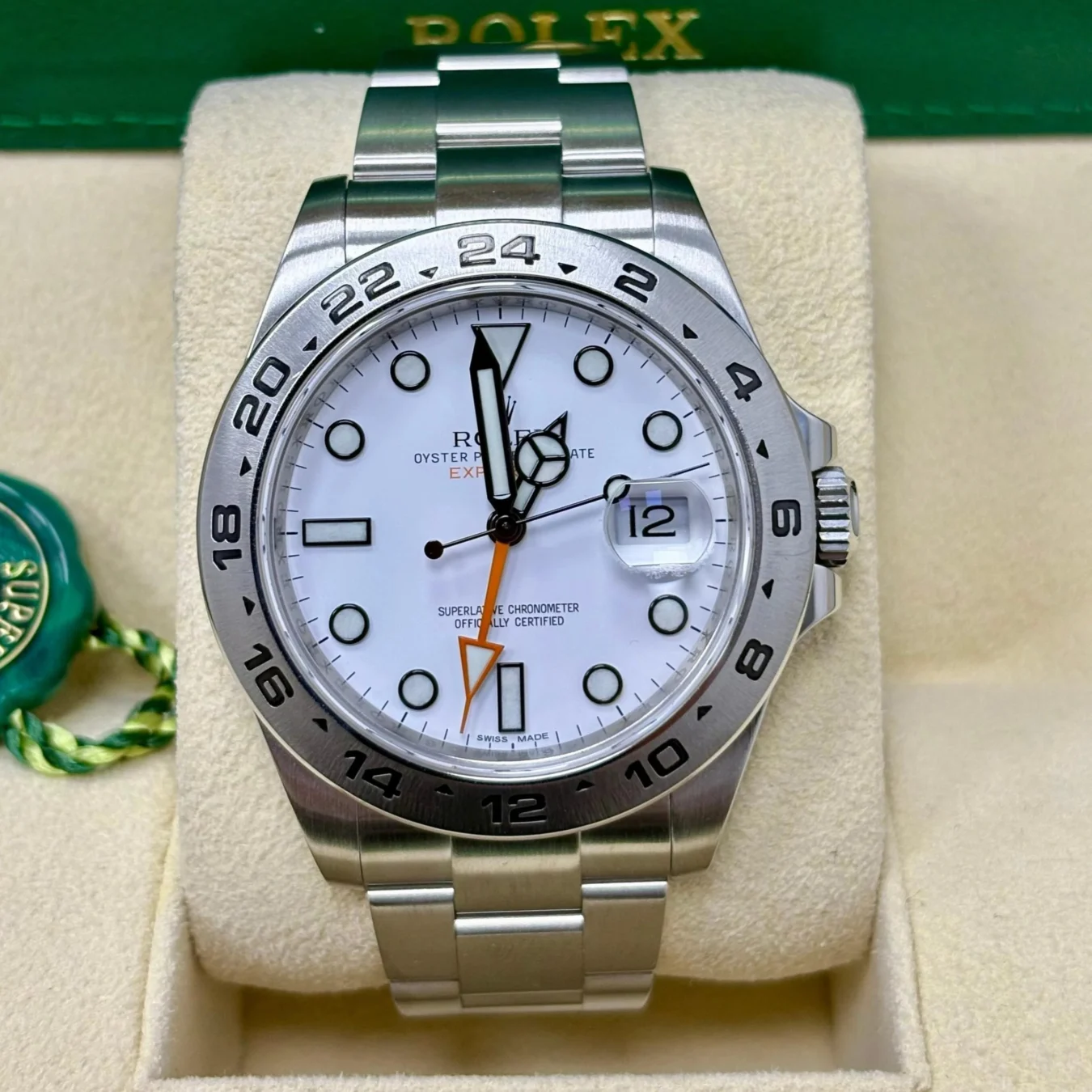 For Sale is a Rolex Explorer II 216570 42MM Polar White Dial and Rolex Box