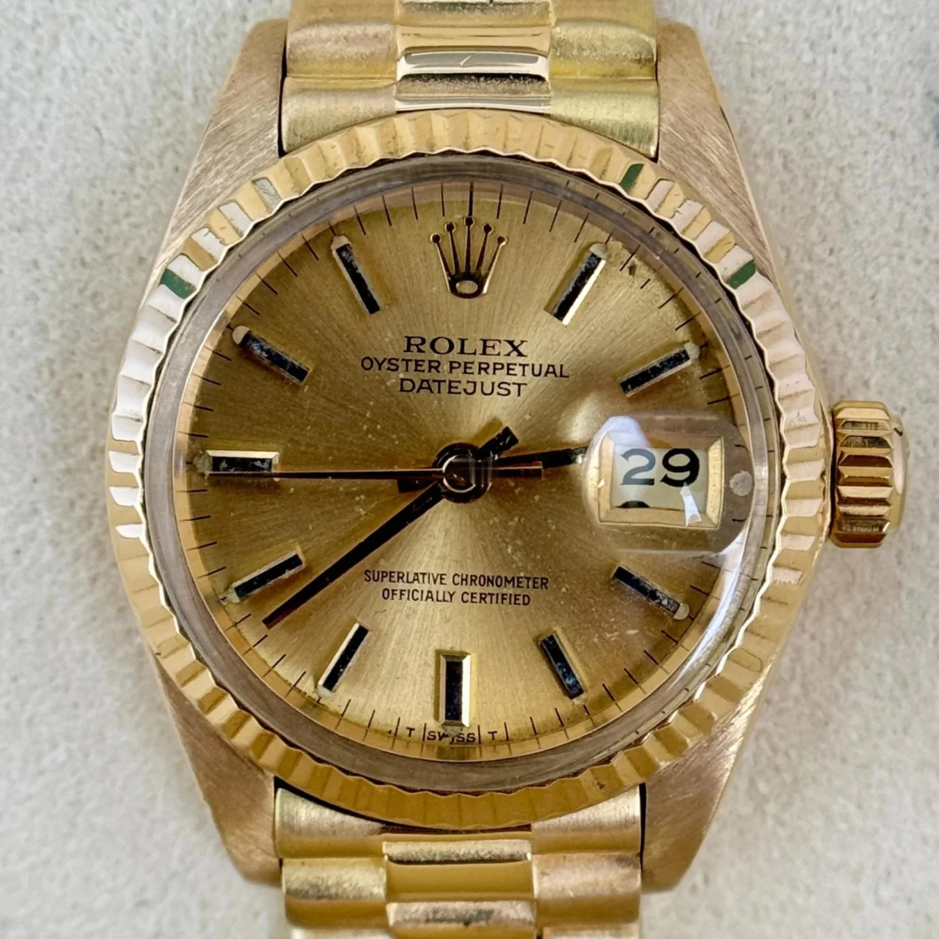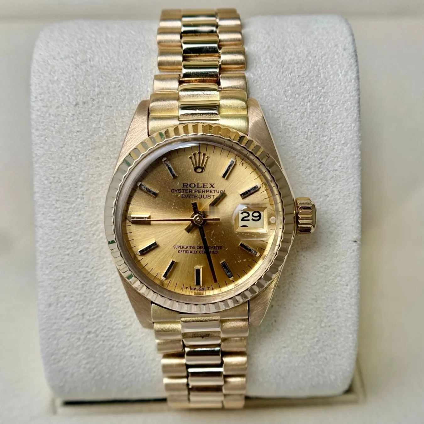 We only carry authentic, genuine fine watches and make sure to inspect all of them for authenticity. No matter the age of the watch, we make sure to provide you with a warranty for peace of mind. All of our pictures are pictures of the actual watch being sold.